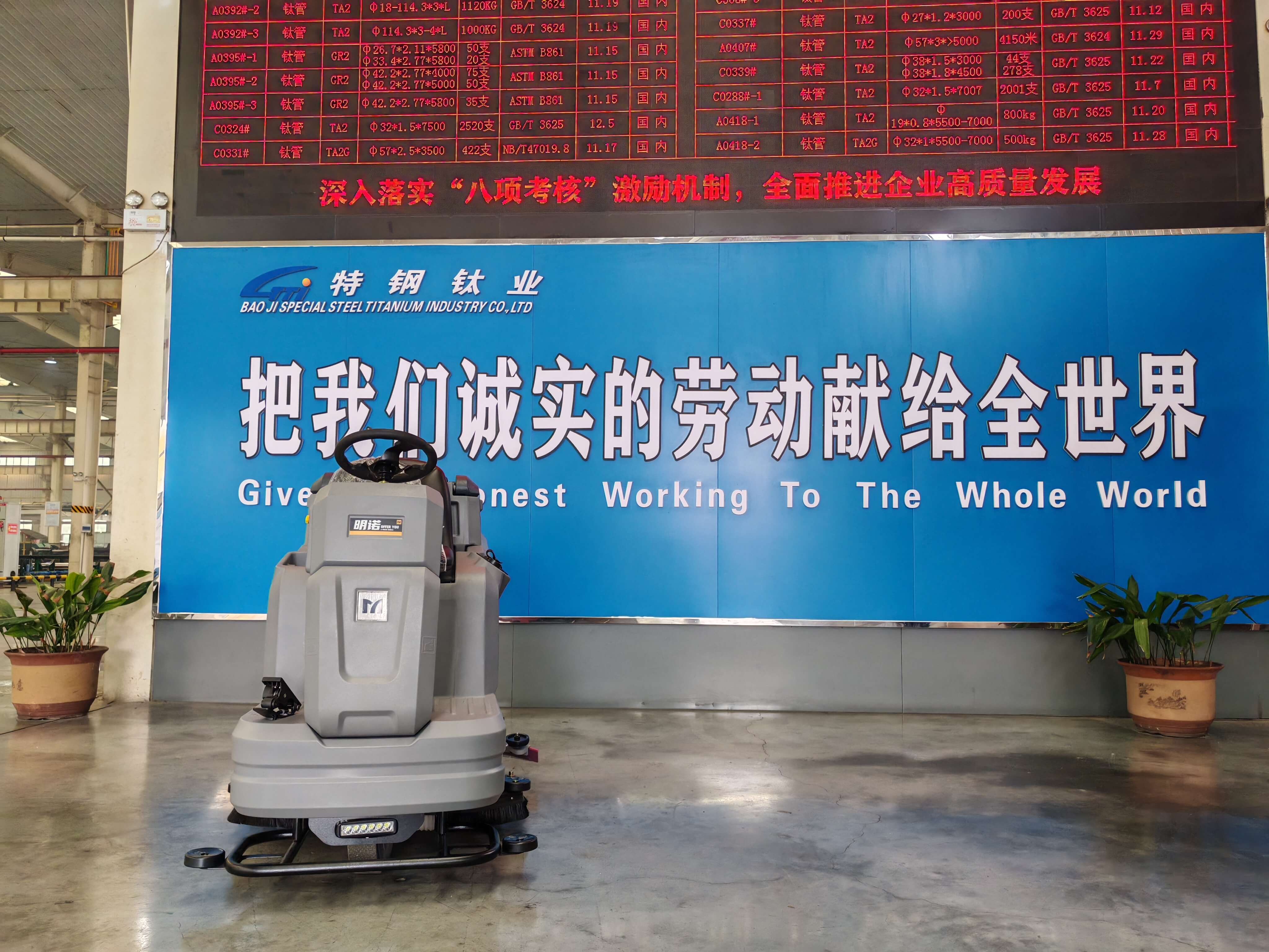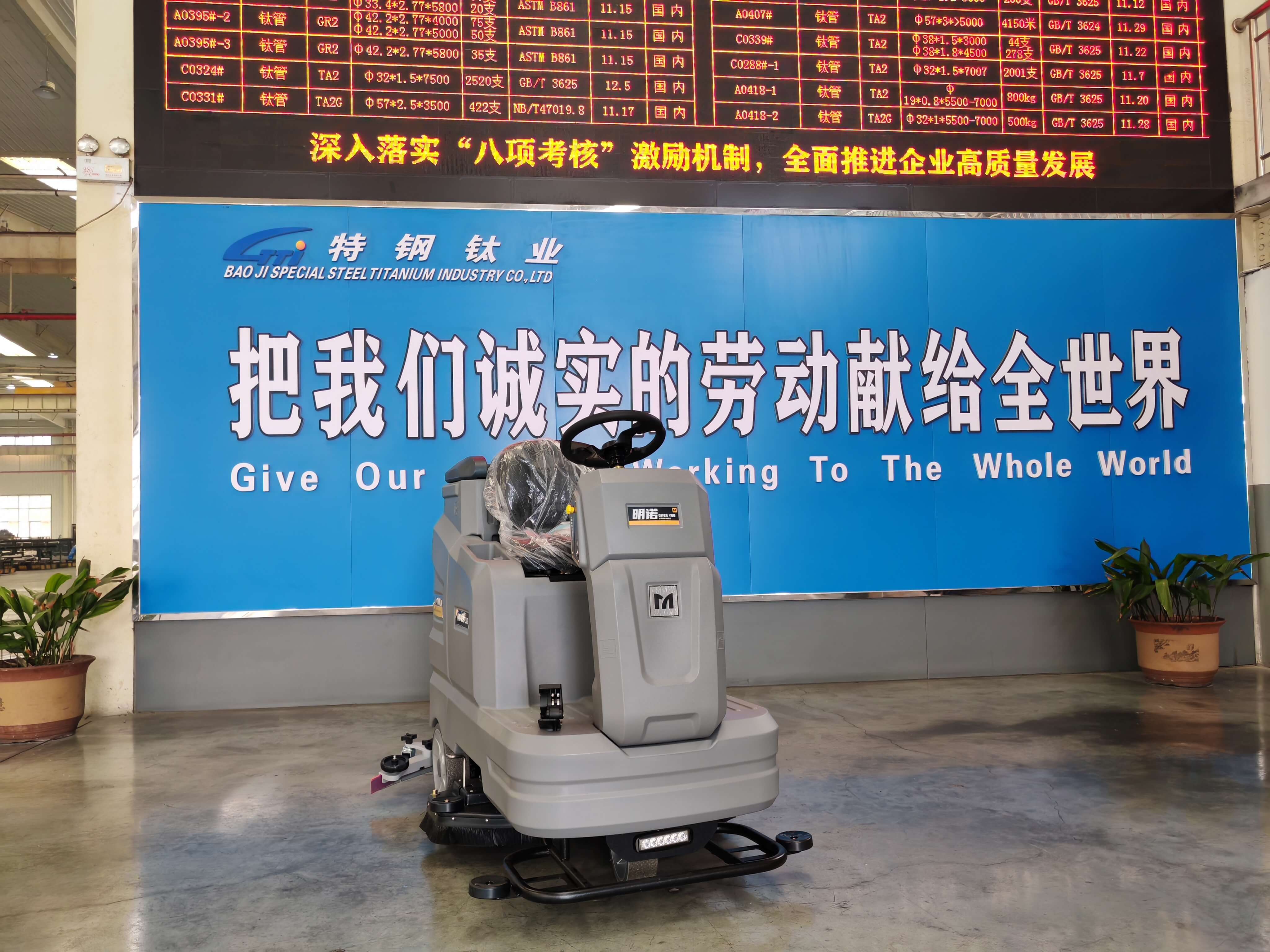 近日,特钢钛业引入 MN-V51 手推式洗地机并投入厂区地面清洁作业,为企业生产环境优化增添新助力,推动厂区清洁工作向精细化、高效化转型。