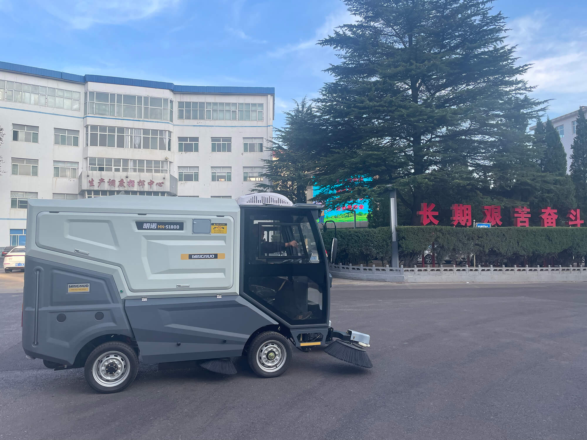 MN-S1800 四轮扫地车具备高效清洁能力,其清扫宽度可1800mm,能快速覆盖大面积区域。独特的清扫系统可有效清理各类灰尘、碎屑等杂物,清扫效率较以往人工清扫大幅提升。此外,扫地车操作简便,减少了人力成本与劳动强度。
