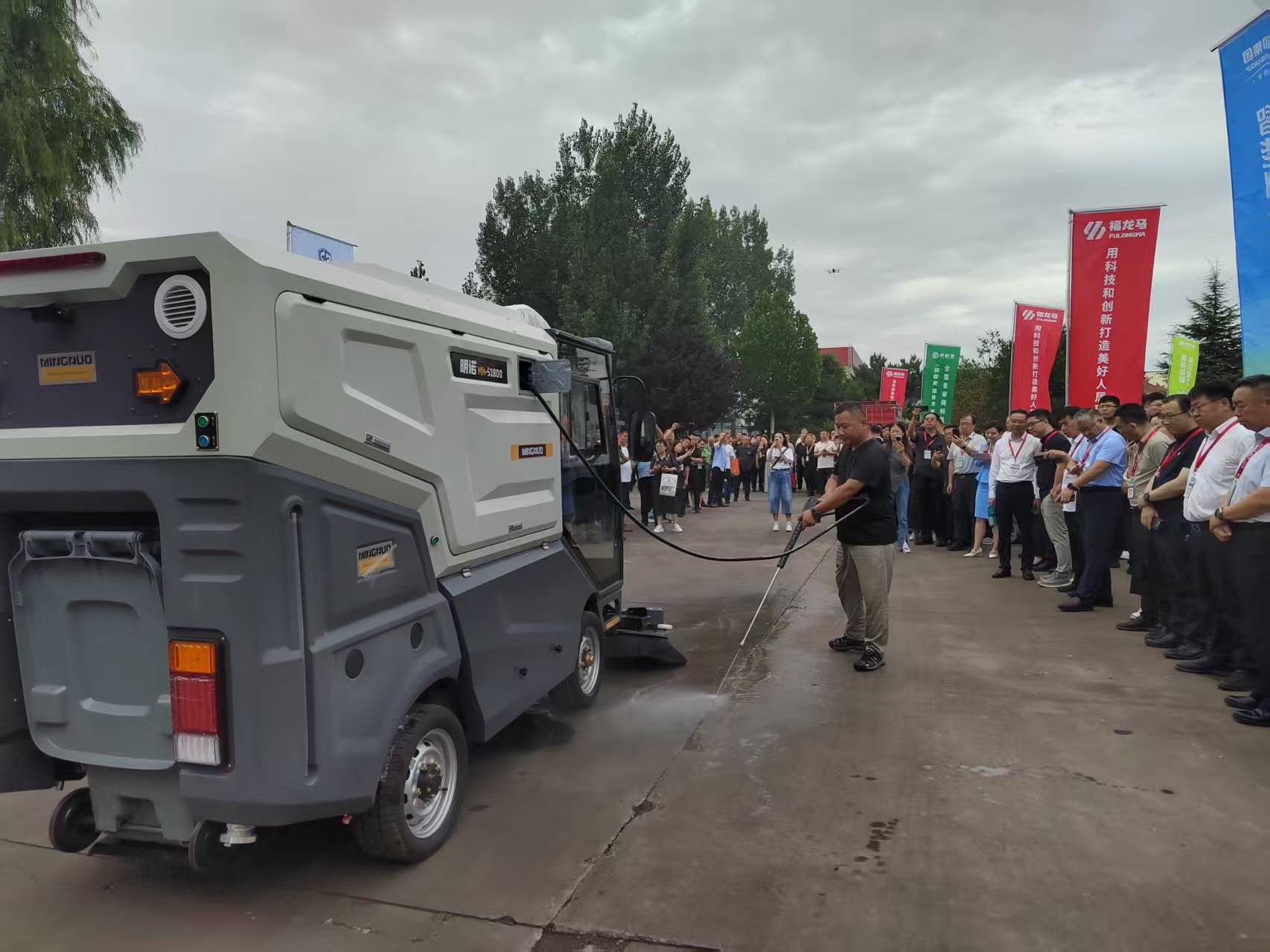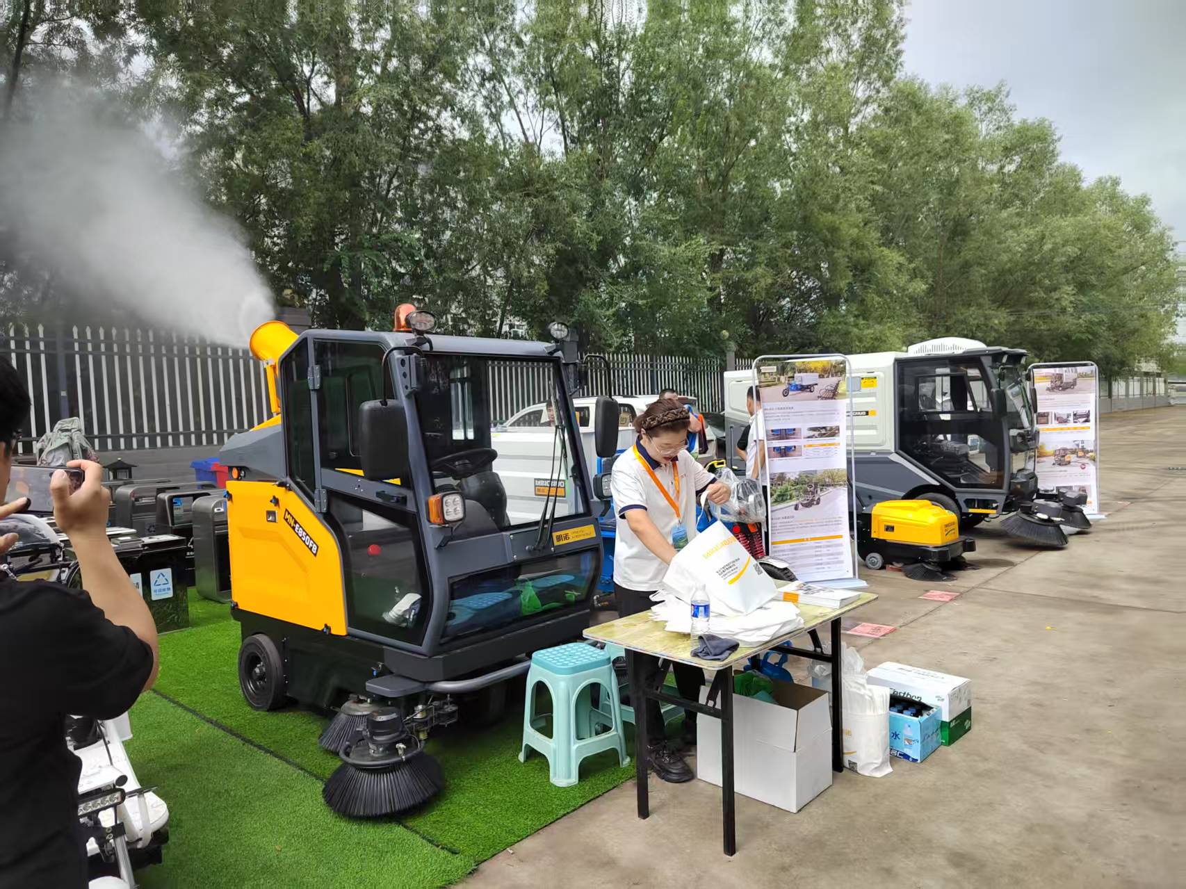 在设备演示区,MN-S1800以其硬朗的外观和高效的清扫能力迅速博得大家的眼球。面对地面杂物、灰尘,凭借强劲动力与精准清扫系统,快速清洁路面,同时也展现了其高压冲洗的能力,精准清洗地面顽固污渍,为城市主干道、工业园区等区域清扫提供有力支撑。