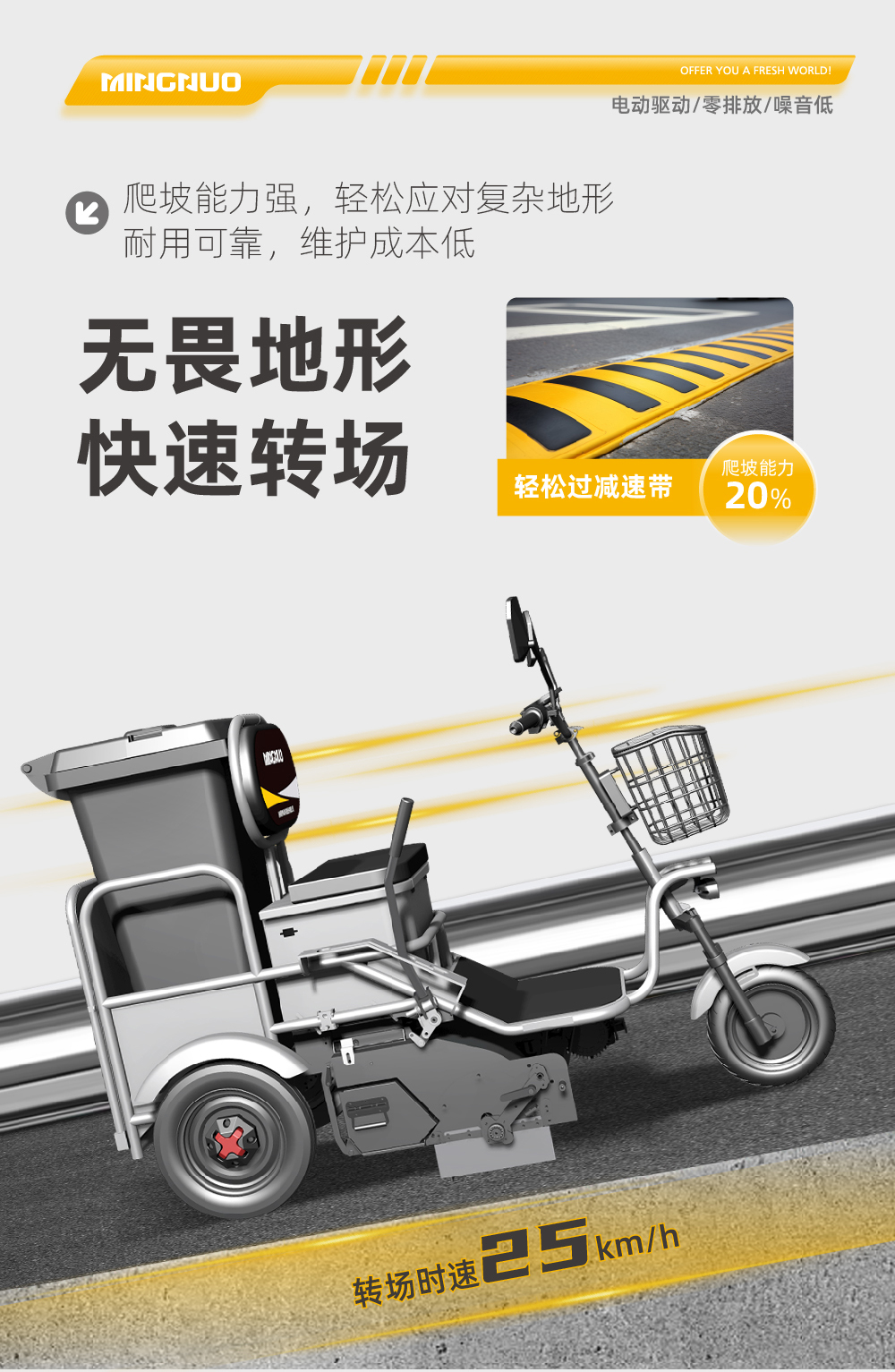 l小巧车身,畅行无阻仅960mm宽车身的设计,轻松穿越限宽桩、人行道、小区窄路等复杂场景,解决传统保洁车辆无法进入的痛点。
